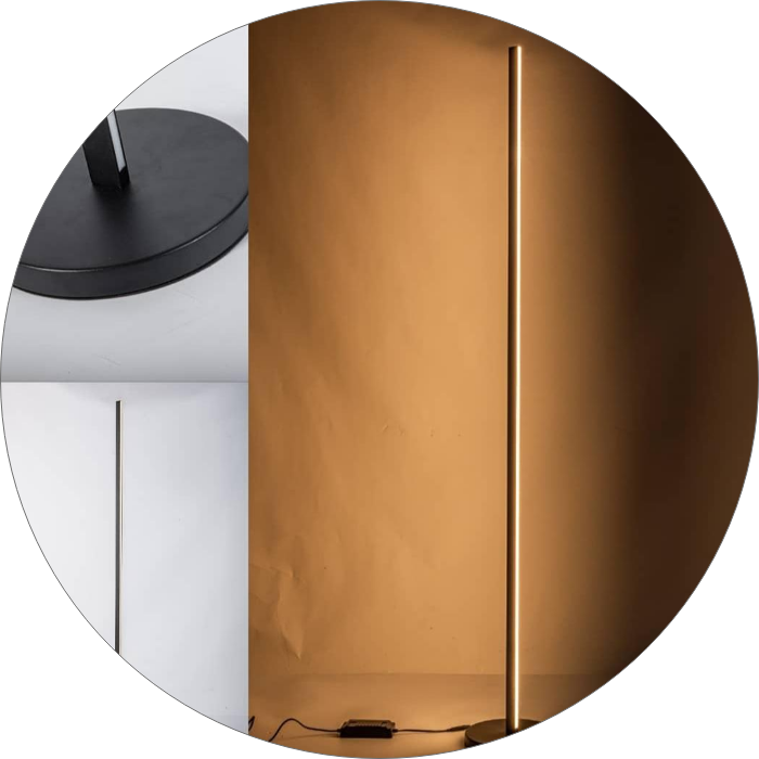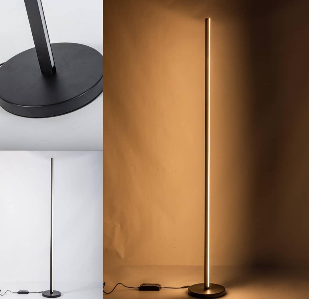 اباژور ایستاده مدرن طرح میله ای ای رنگ کوره ای درجه یک مشکی طلایی رنگ نور افتابی نچرال یخی قطر لوله دو سانت بدنه آلومینیومی سایز کار 150سانتیمتر میزان نوردهی 22وات میباشد دارای ریسه های اس ام دی با کیفیت