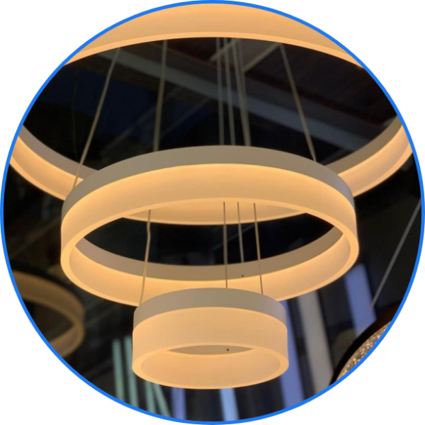 لوستر های اس ام دی نور دهی بالا تر و مصرف کمتری دارند.طرحی جدید و فوق العاده خاص برای فضایی خاص و مدرن لوستر مدرن سقفی پلکسی لبه ۷سانت سانت با لبه های پلکسی گلاس تایوانی درجه یک مات مناسب انواع پذیرایی و پاگرد و سقف های بلند سایز حلقه ها بیست و چهل و شصت سانتی متر ارتفاع از سقف قابل تنظیم بدنه فلزی آلومینیومی با رنگ کوره ای درجه یک دقیقا کیفیتی مشابه نمونه های وارداتی.