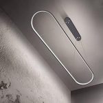 لوستر خطی بیضی دلوری با بدنهی آلومینیومی رنگ کورهای و نور LED قابل تعویض،