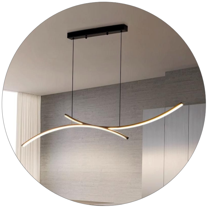 • حتی می‌توان با تنظیم نابرابر آویزها، فرم هنری و پویایی در چیدمان نور ایجاد کرد.