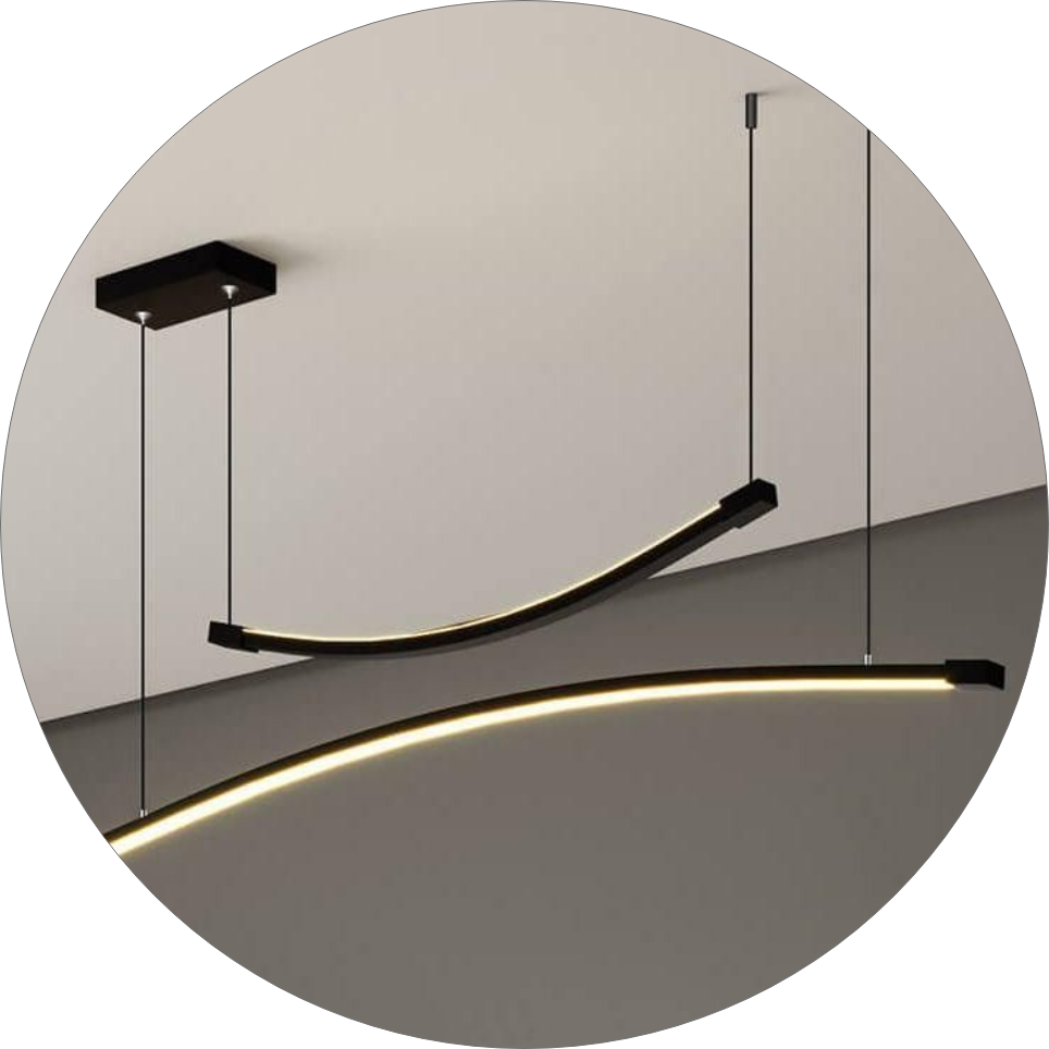 • حتی می‌توان با تنظیم نابرابر آویزها، فرم هنری و پویایی در چیدمان نور ایجاد کرد.