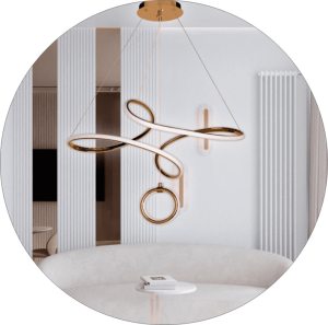 حتی میتوان با تنظیم نابرابر آویزها، فرم هنری و پویایی در چیدمان نور ایجاد کرد.