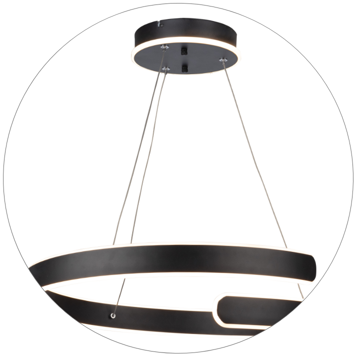 • حتی می‌توان با تنظیم نابرابر آویزها، فرم هنری و پویایی در چیدمان نور ایجاد کرد.