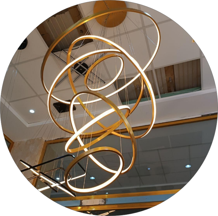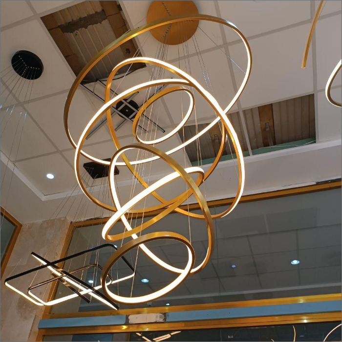لوستر سقفی بلند طرح حلقه ای لاکچری رنگ نور آفتابی مهتابی یخی میباشد سایز کار در ابعاد20،30،50،60،70سانتیمتر رنگ بدنه کوره ای درجه یک دارای درایورهای ضخیم و مقاوم دهنه کار سیلیکونهای نسوز میباشد. در سه حالت نور به داخل و بیرون یا ترکیبی رنگ بدنه مشکی  طلایی بدنه آلومینیوم ضخیم