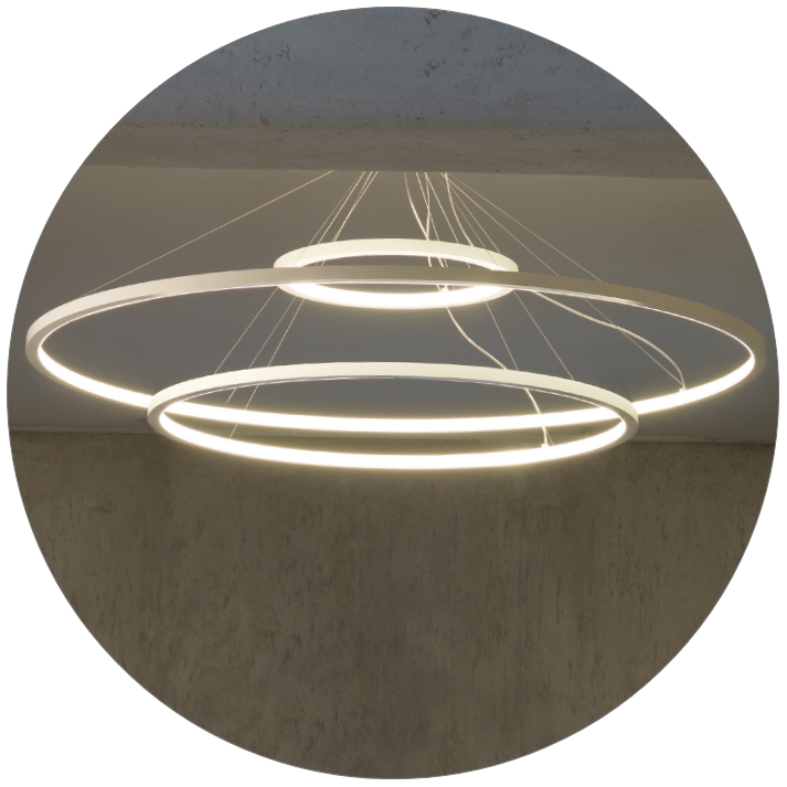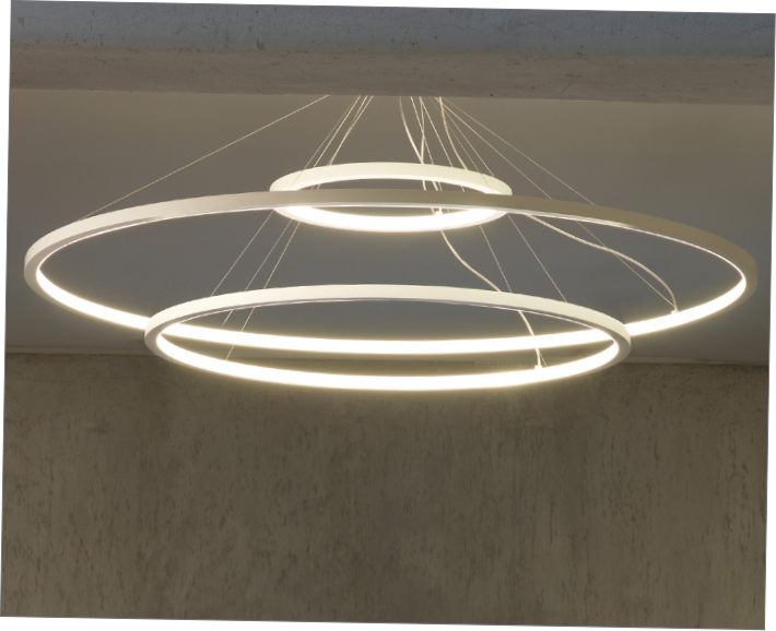 • حتی می‌توان با تنظیم نابرابر آویزها، فرم هنری و پویایی در چیدمان نور ایجاد کرد.