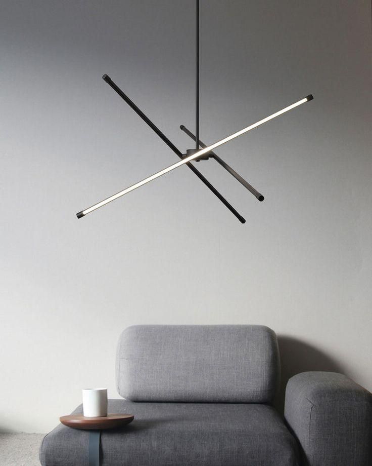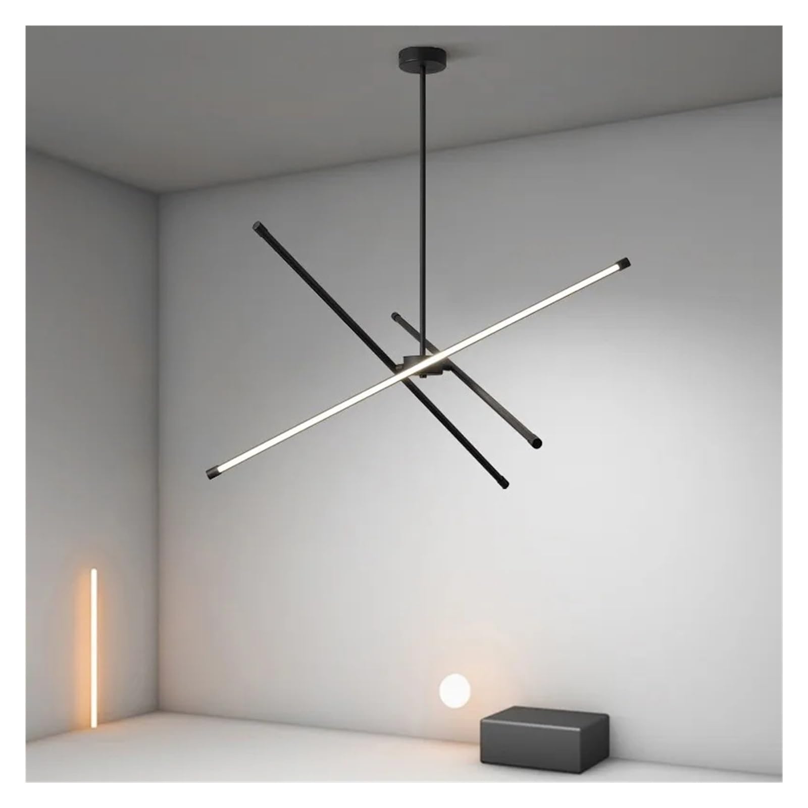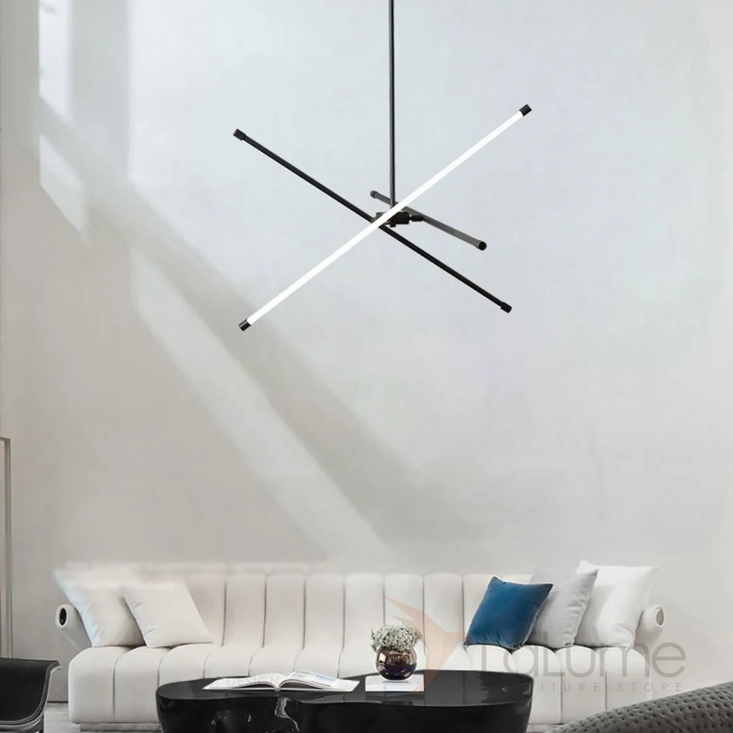 لوستر سقفی مینیمال و مدرن با طراحی شیک و خاص، ترکیبی از سادگی و ظرافت را به فضا می‌آورد. از چند میله باریک و ضربدری تشکیل شده که منبع نور خطی LED در امتداد یکی از میله‌ها نور را یکنواخت پخش می‌کند.