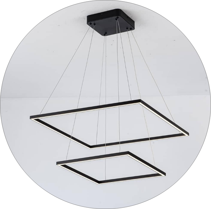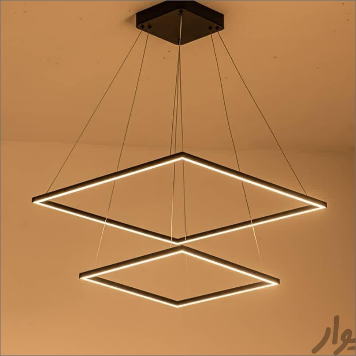 لوستر مدرن سقفی مربع مدلی زیبا و خاص، رنگ نور آفتابی مهتابی یخی میباشد سایز کار 40 و 60 سانتیمتر ارتفاع از سقف قابل تنظیم ریسه های قابل تنظیم رنگ بدنه مشکی طلایی کوره ای درجه یک دارای درایورهای ضخیم و مقاوم دهنه کار سیلیکونهای نسوز میباشد.در سه حالت نور به داخل و بیرون یا ترکیبی از داخل و بیرون