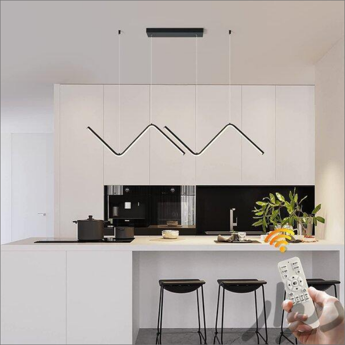 لوستر مدرن طرح خطی شکسته مدل زیبا و خاص رنگ نور آفتابی نچرال یخی میباشد سایز هر ضلع 50سانتیمتر ارتفاع از سقف قابل تنظیم خم شده رو به پایین با پروفیل 2در2 ریسه های قابل تنظیم رنگ بدنه سفید مشکی طلایی کوره ای درجه یک دارای درایورهای ضخیم و مقاوم دهنه کار سیلیکونهای نسوز میباشد.در سه حالت نور به داخل و بیرون