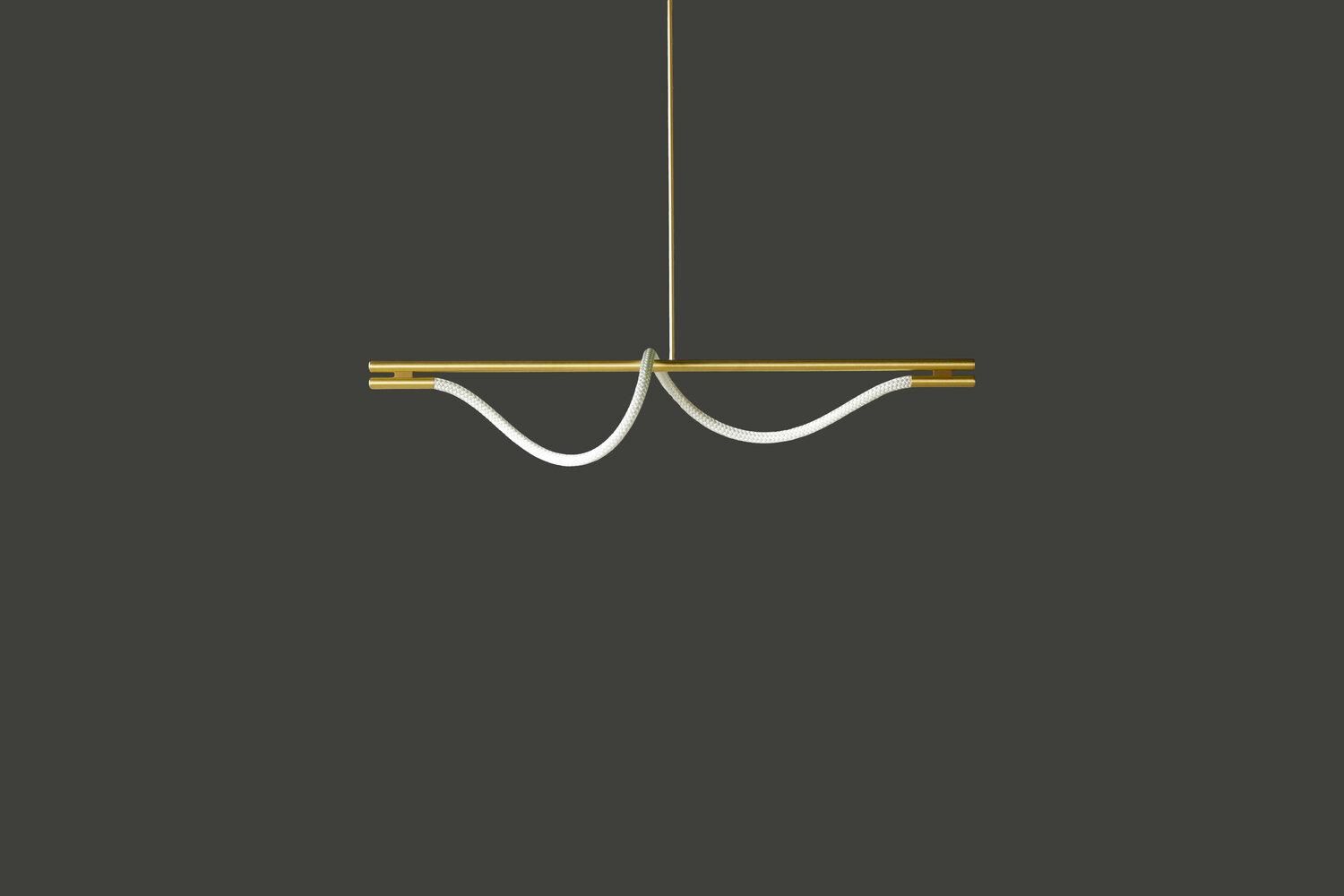 • میله‌ی افقی طلایی یا برنجی: نگهدارنده اصلی چراغ، آویزان از سقف با سیم نازک.