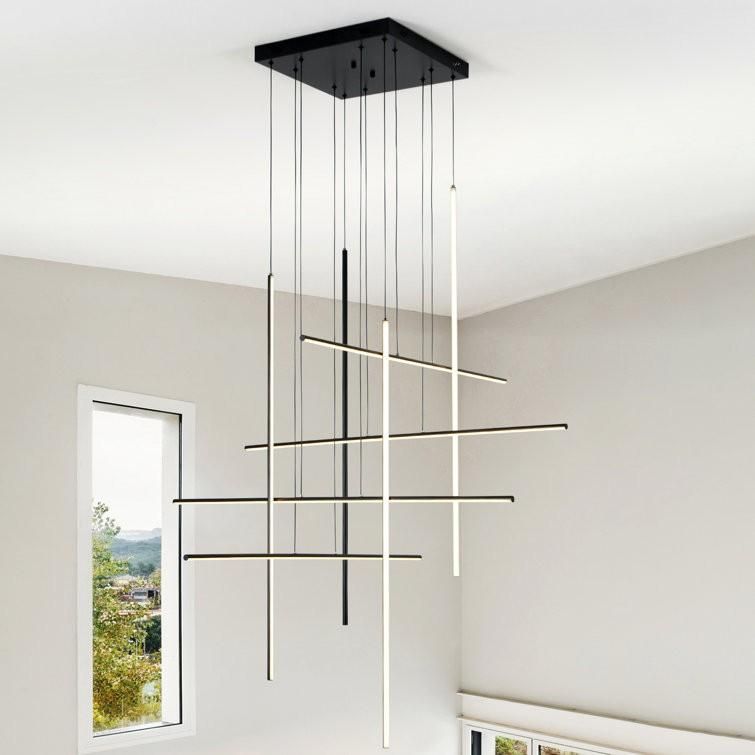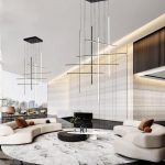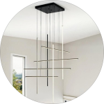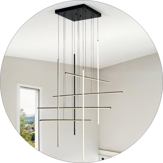 • حتی می‌توان با تنظیم نابرابر آویزها، فرم هنری و پویایی در چیدمان نور ایجاد کرد.