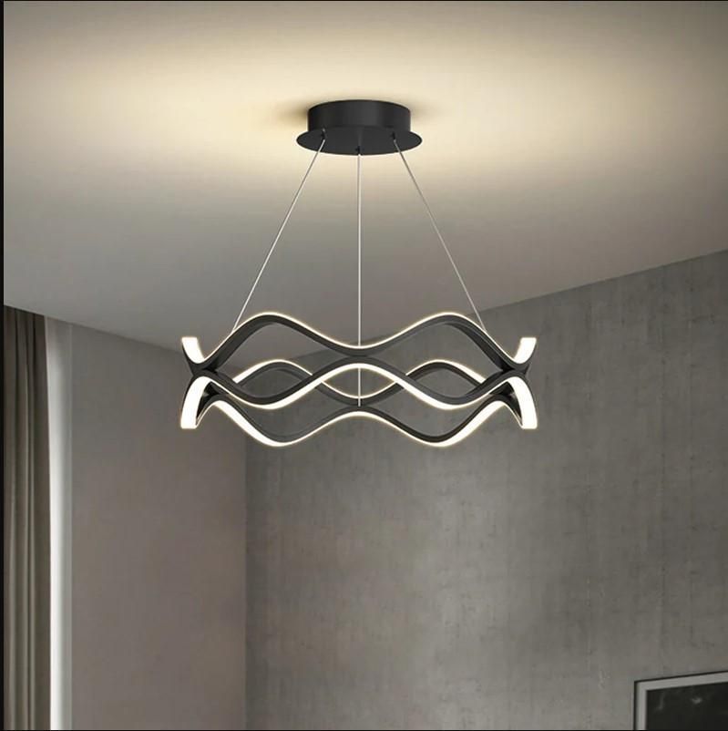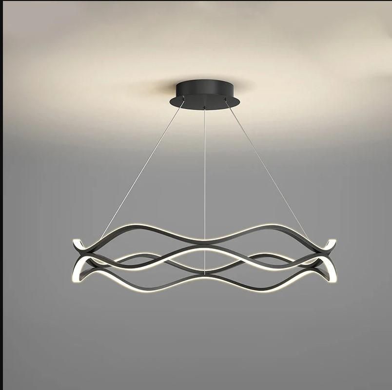 این لوستر با خطوط منحنی و طراحی موج‌دار خود، ظاهری بسیار مدرن و شیک به فضا می‌بخشد. خطوط نرم و روان آن حس لطافت و زیبایی خاصی ایجاد می‌کنند.