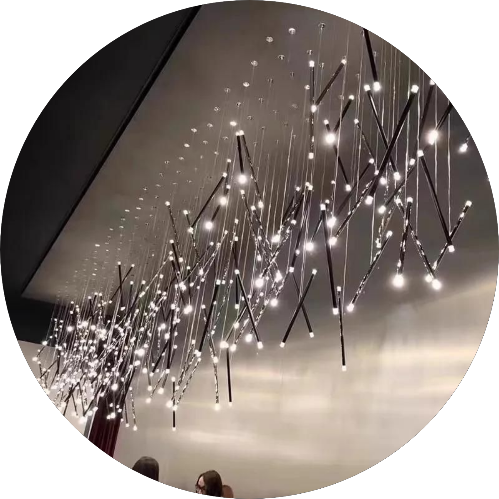 حتی میتوان با تنظیم نابرابر آویزها، فرم هنری و پویایی در چیدمان نور ایجاد کرد.