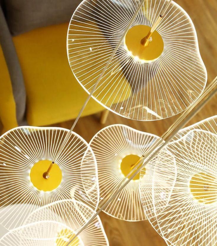 لوستر سقفی پلکسی گلاس طرح قاصدک دفرمه ترکیبی زیبا از هنر مدرن و فناوری نور است.