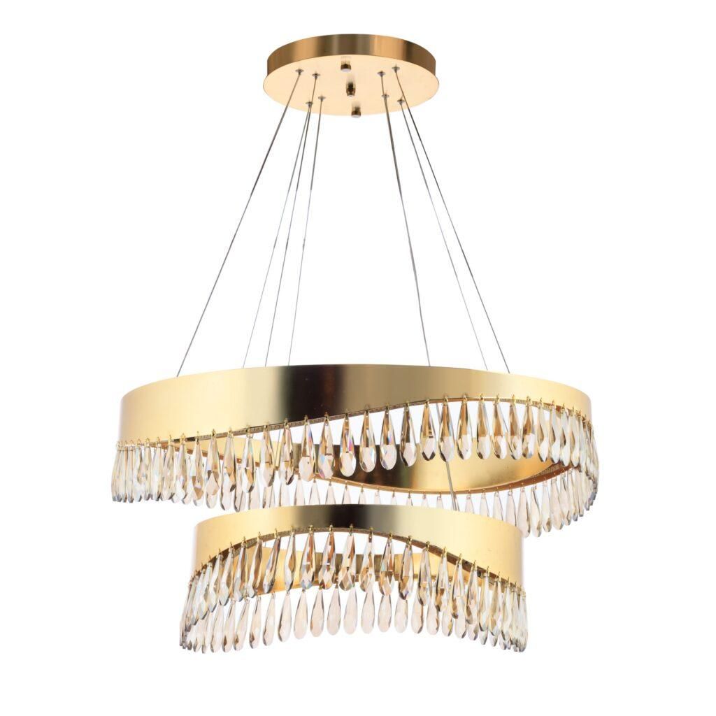 لوستر دو حلقه کریستالی، ترکیبی از زیبایی، نوردهی عالی و کیفیت بالا است که فضای شما را به شکوه و جلوه‌ای لوکس مزین می‌کند.