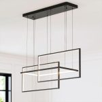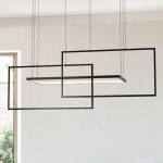 این لوستر با طراحی مستطیلی زنجیرشده، نمایی متفاوت و چشمنواز ایجاد میکند و نور ملایم و یکنواخت آن، حس گرما و آرامش را به فضا منتقل میسازد.