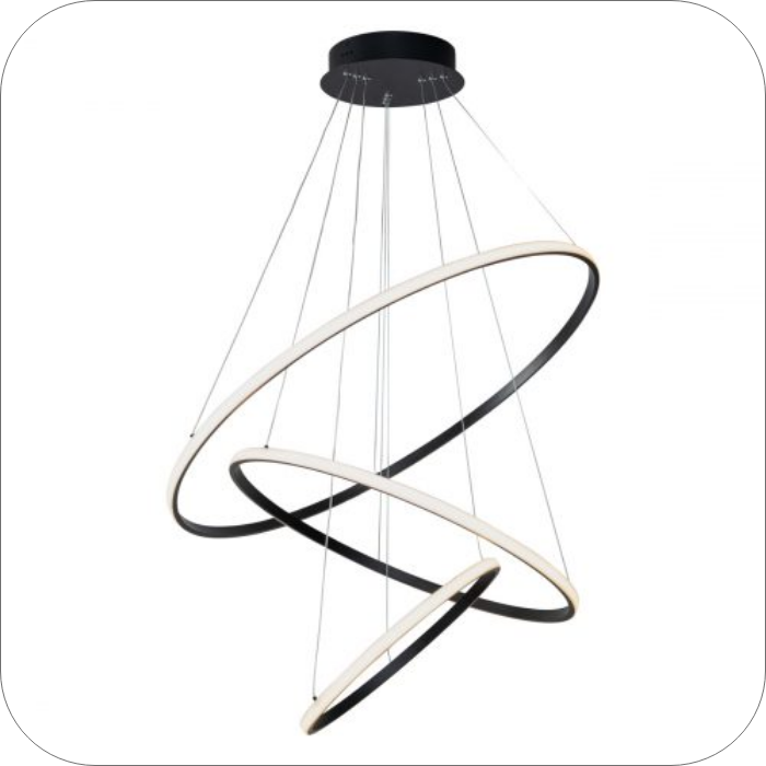 لوستر LED  طرحی زیبا برای فضای های شما عزیزان لوستر مدرن حلقه ایی3طبقه ایی با سیم قابل تنظیم بدنه الومینیوم با رنگ کوره ایی درجه یک رنگ بدنه سفید مشکی طوسی طلایی رنگ نور افتابی مهتابی یخی دهنه کار با سیلیکون نسوز بسته میشود.