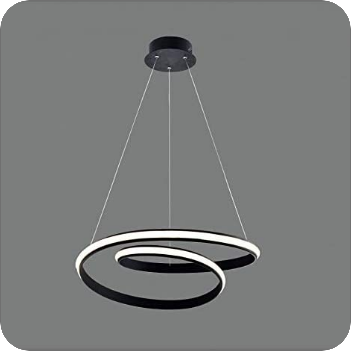 لوستر مدرن ،خلاقانه با سیم ارتفاع قابل تنظیم لوستر حلقه ای طرح تو دلی 60 واتی که از دو حلقه سایز های سی و پنجاه پنچ سانتی تشکیل شده است و بسیار مناسب سالن پذیرایی اتاق غذاخوری اتاق خواب اتاق خواب میباشد ارتفاع از سقف انها قابل تنظیم میباشد دارای ریسه های اس ام دی میباشد.رنگ نور آفتابی مهتابی یخی سه رنگ