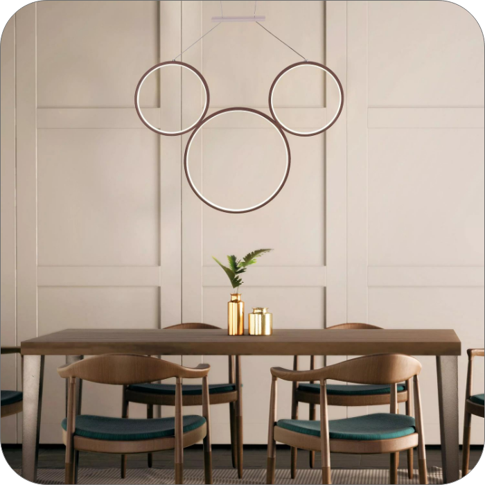 لوستر مدرن ، چراغ آویز خلاقانه طرحی جدید و فوق العاده خاص برای فضایی خاص و مدرن مناسب انواع میز و کانتر لوستر سقفی خطی سه حلقه مدرن حلقه های سایز سی و پنجاه سانتی متری 3عددی رنگ نور آفتابی و مهتابی و یخی میتوانید سفارش دهید خم شده رو به پایین با پروفیل دو در دو سانت ضخیم ارتفاع از سقف قابل تنظیم ریسه های قابل تعویض سه سال طول عمر مفید بدنه آلومینیومی ضخیم رنگ نور آفتابی و مهتابی و یخی رنک بدنه رنگ کوره ای درجه یک.