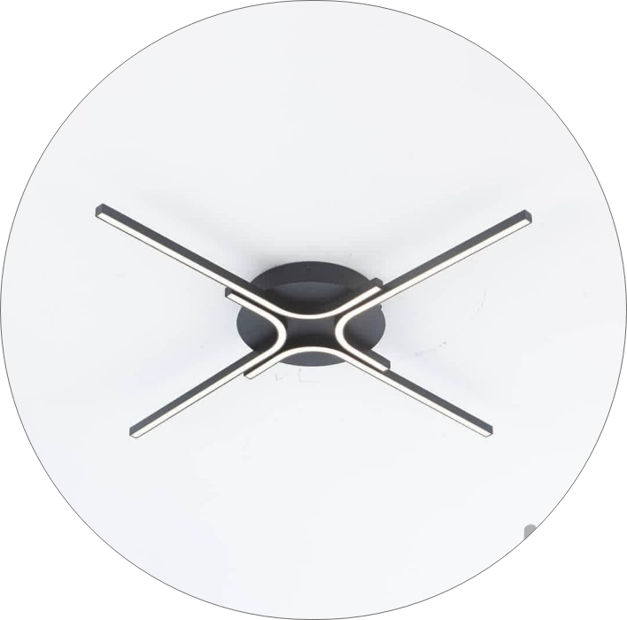 لوستر مدرن سقفی طرح پلاس تشکیل شده از4 پروفیل خمیده مدرن جنس بدنه آلومینیوم ضخیم رنگ بدنه رنگ کوره ای درجه یک در رنگ نور آفتابی مهتابی یخی در ابعاد 70سانتی با لبه های 5سانتی ورقه فلزی یک میل دهنه کار با سیلیکون نسوز میباشد رنگ بدنه مشکی طلایی میباشد .قابل سفارش در ابعاد دلخواه