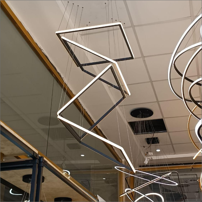 لوستر مدرن سقفی طرح مربع پله ای طرحی جدید و خاص بسیار زیبا مناسب انواع پذیرایی حال محیط اداری بدنه آلومینیوم ضخیم رنگ بدنه مشکی طلایی کوره ای ضخیم شاهکار در طراحی سبک مدرن ارتفاع از سقف قابل تنظیم رنگ آفتابی مهتابی یخی ارتفاع کار یک متر؛سی میباشد سایز مربع ها 60در60
