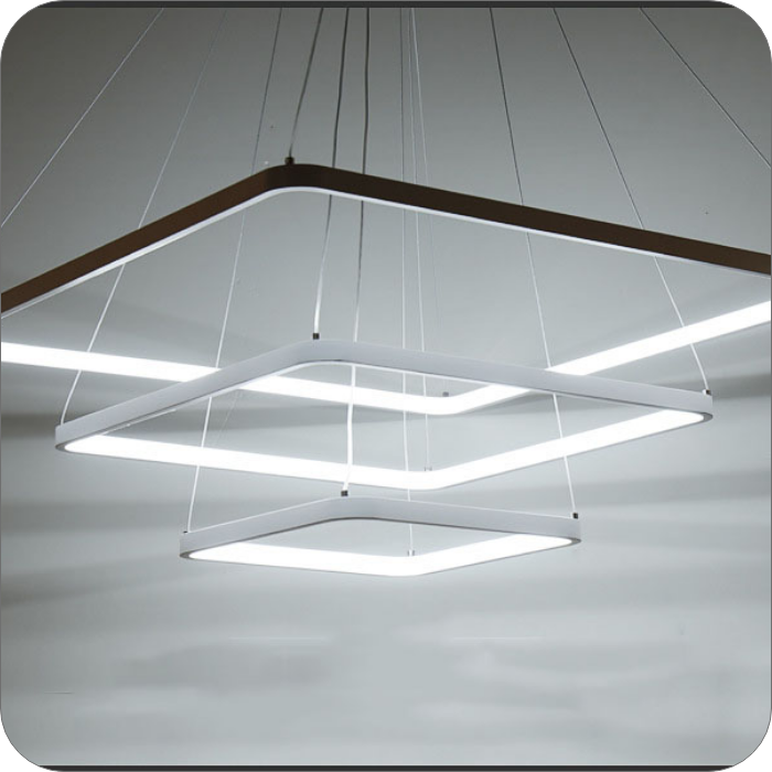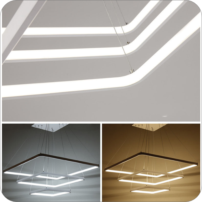 لوستر LED مدرن ، چراغ آویز خلاقانه با سیم ارتفاع قابل تنظیم یک متری، لوستر مربع ایی 100 واتی که از سه طبقه سایز های 30 و 50 و 70سانتی تشکیل شده است و بسیار مناسب سالن پذیرایی و اتاق و آشپزخانه میباشد،لازم به ذکر است که این سبک لوستر ها را با تغییر حالت آویز شدن به شکل های مختلف تبدیل کنیم و ارتفاع از سقف انها قابل تنظیم میباشد.