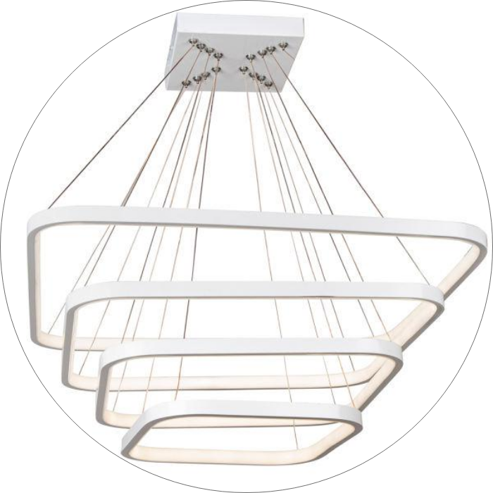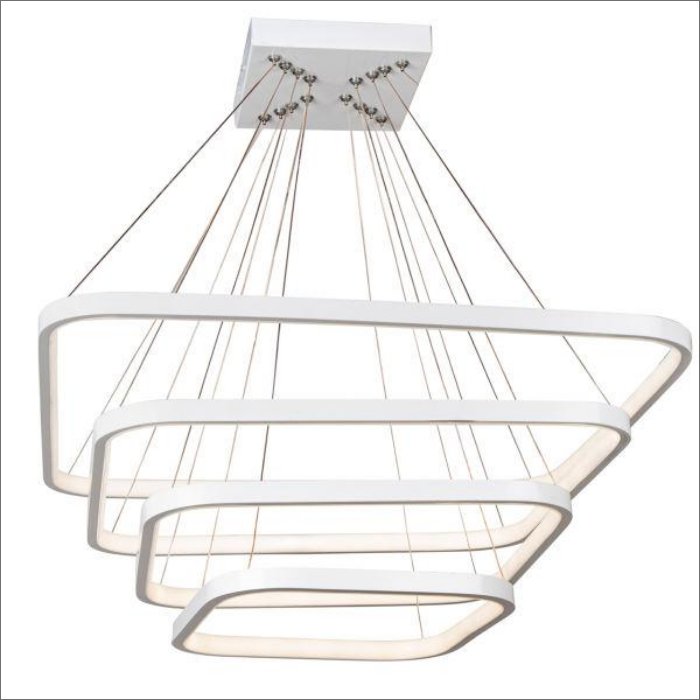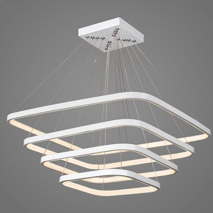 لوستر LED مدرن ، چراغ آویز خلاقانه طرحی جدید و فوق العاده خاص برای فضایی خاص و مدرن لوستر مدرن مربع ایی 4 طبقه ایی مناسب فضاهای حال و پذیرائی در سایز های سی و پنجاه و هفتاد و نود در رنگ های مشکی و سفید رنگ نورهای افتابی و مهتابی و یخی ارتفاع از سقف 50 الی یک متر.
